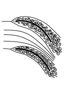 流線型の翼状(エアフォイル)にした羽根の形状を実現。これまでの曲板に比べ羽根間流路の空気が流線にそって流れるため、エネルギーのロスを減らしています。また、曲板型を使用したシロッコファンに比べ、はるかに高い静圧域で使用することができます。オプションでスクロールダンパを装着することにより、吐出風量を任意に設定でき、負荷に応じて室内への送風量と空気条件をある程度調節することができます。